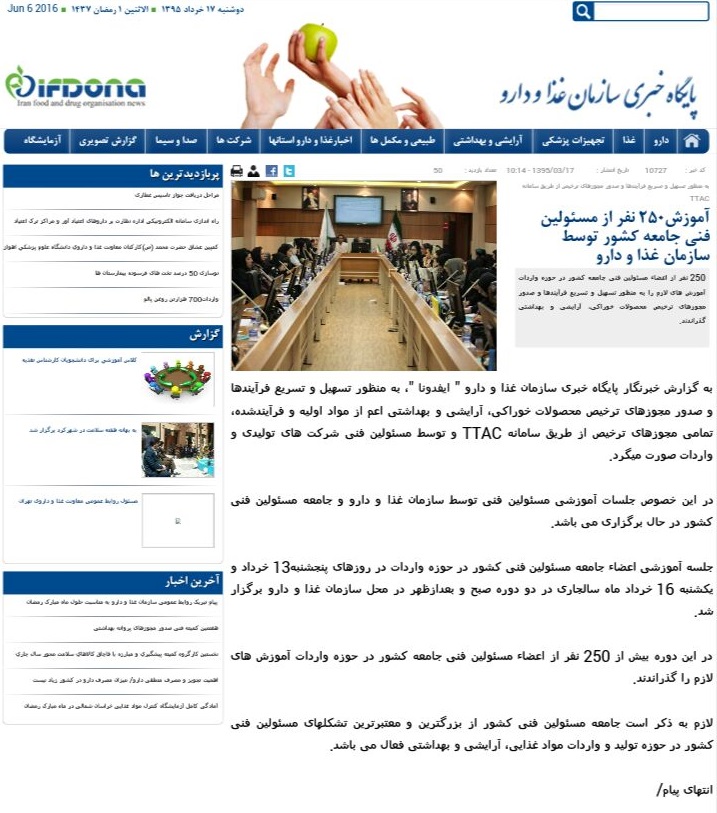 دارای کادری فوق العاده خبره و مجرب با رزومه عالی جهت آموزش مسئولین فنی سازمان غذا و دارو، مدیران شرکتهای بازرگانی و کلیه علاقمندان به واردات و صادرات محصولات سلامت محور
